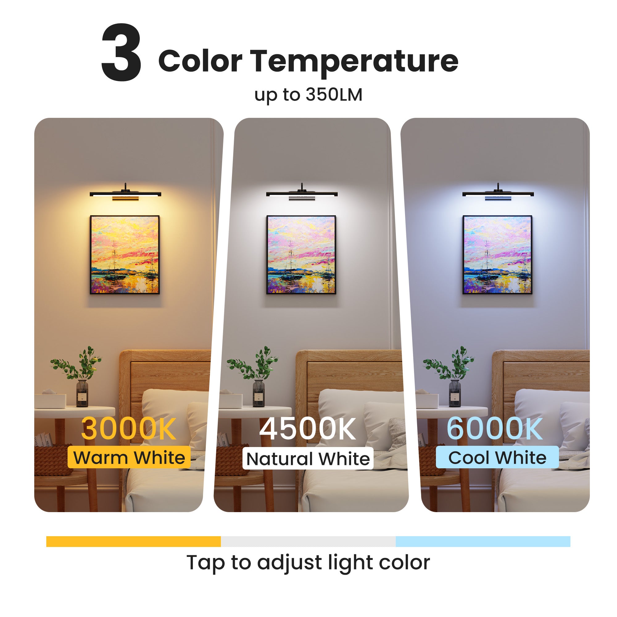 ✔ 3 color temps (Warm/Neutral/Cold lighting)