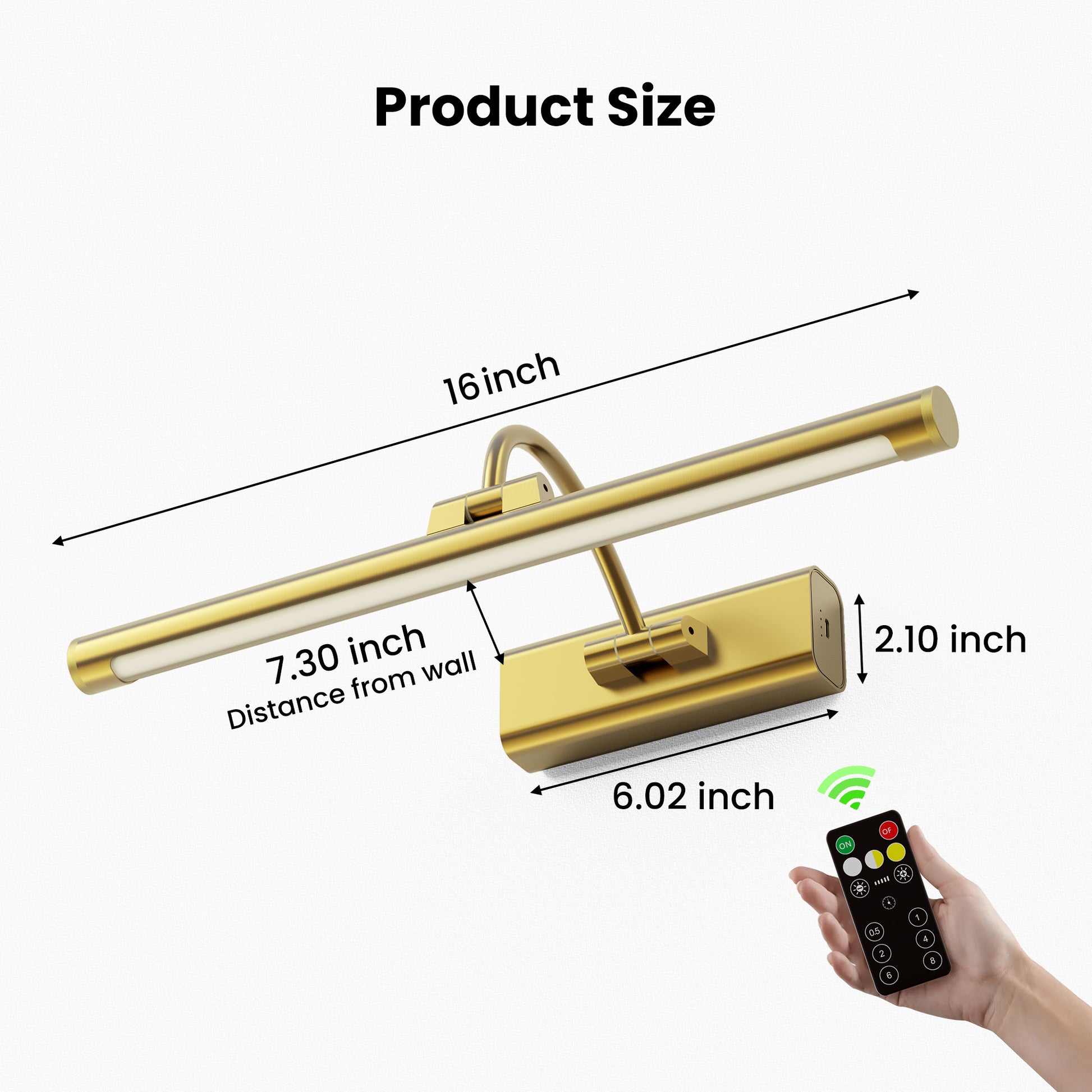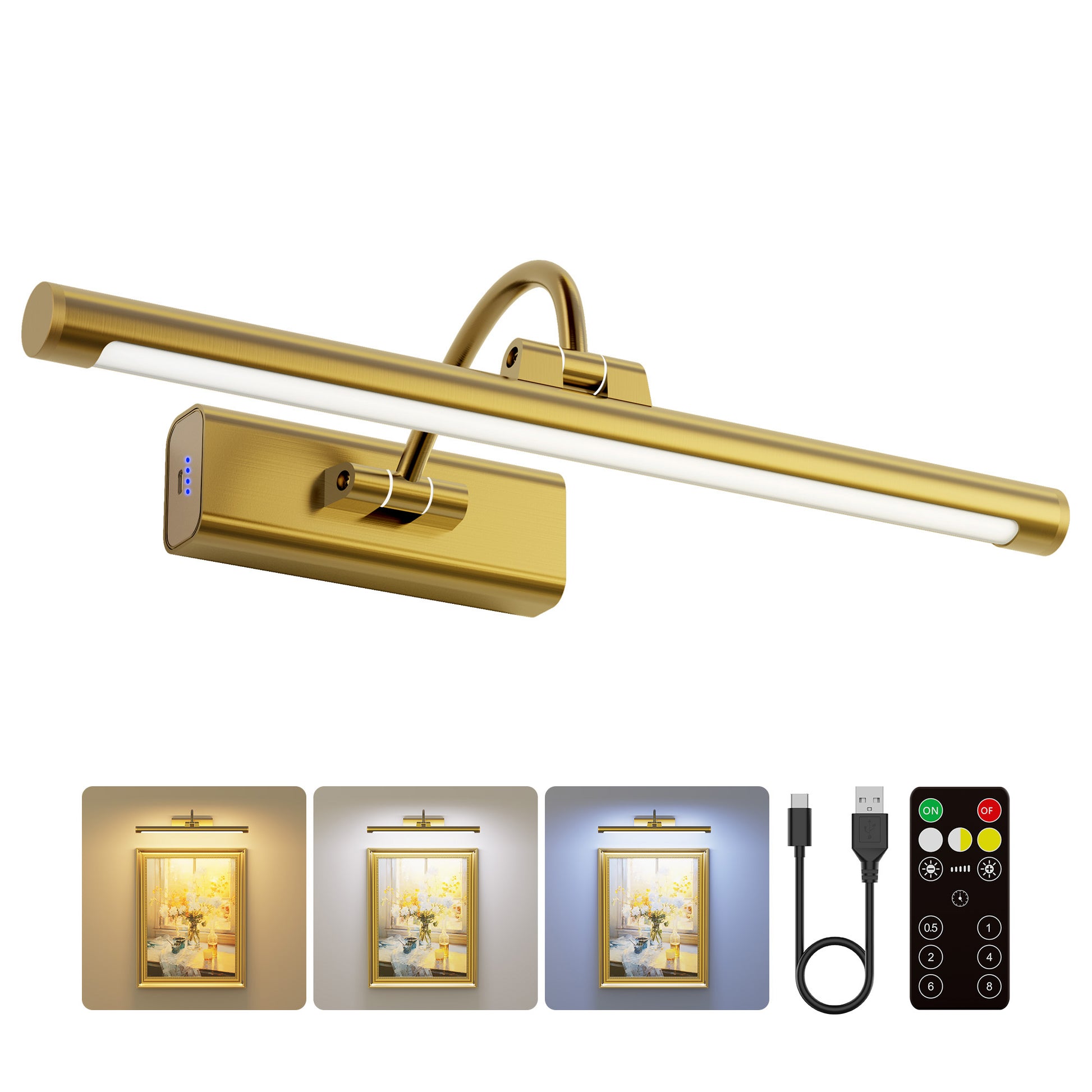Kryoza Dimmable Cordless for Wall Picture with 6000mAh Battery - Brass Operated Wireless Wall Art Light with Remote Control for Artwork, Mirror & Portrait